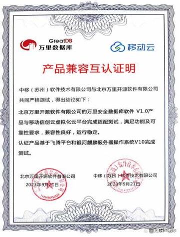 链接未来!万里数据库加入移动云「算力网络数据库生态产业链」